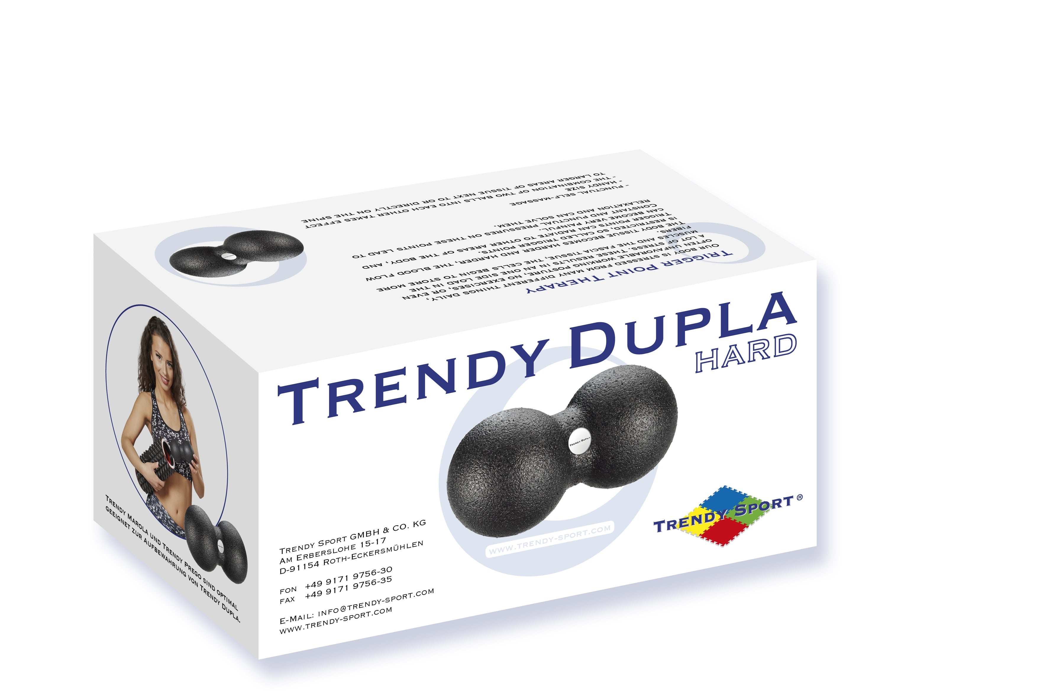 Grâce à sa forme spéciale, le Duoball est idéal pour le traitement des muscles parallèles . Les exercices peuvent être effectués contre un mur ou allongé. Le déplacement du poids du corps, notamment pour les massages muraux, permet un réglage individuel de l'intensité.