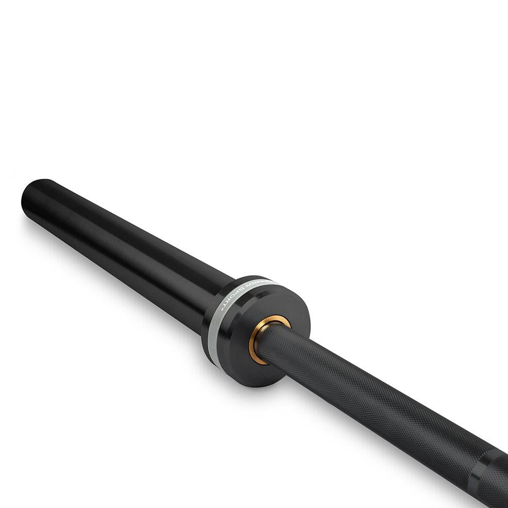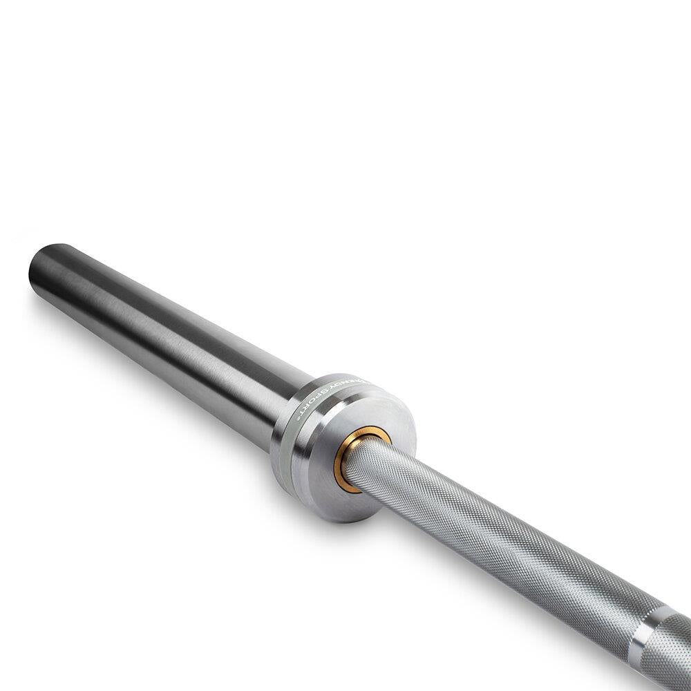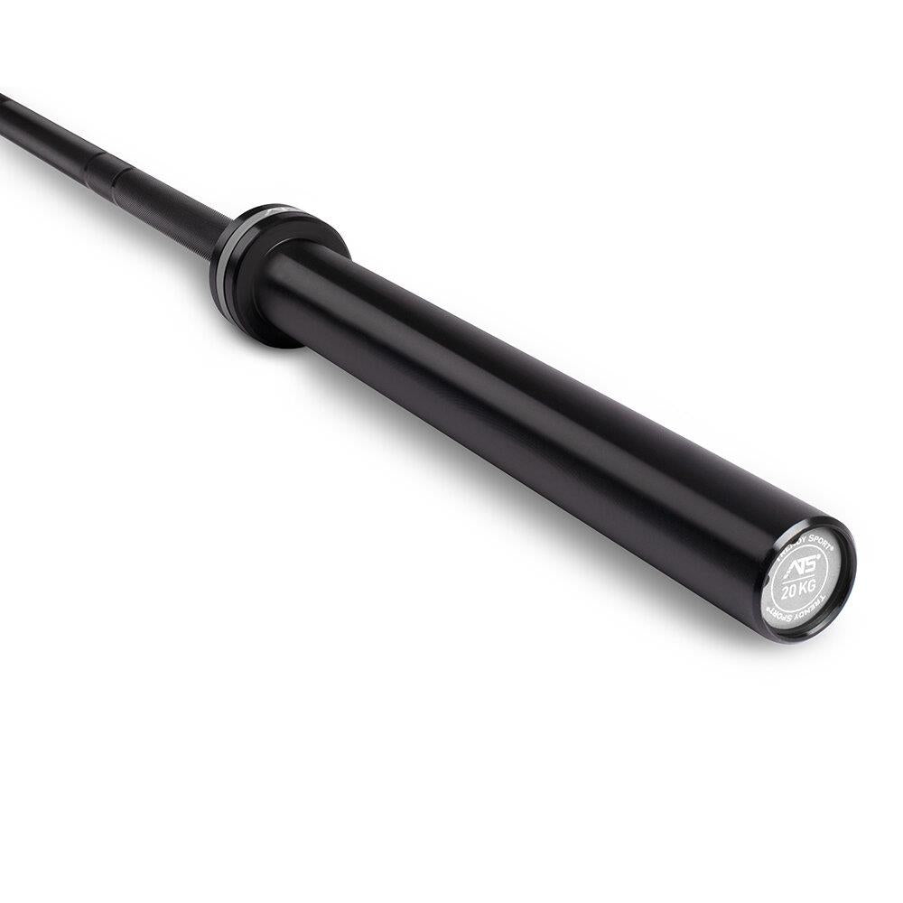 Barre ATS de 2,2 m de long, 20 kg de poids, sans moletage central. Disponible en chrome ou en noir. Idéal pour un entraînement polyvalent, ne convient pas aux exercices de chute.