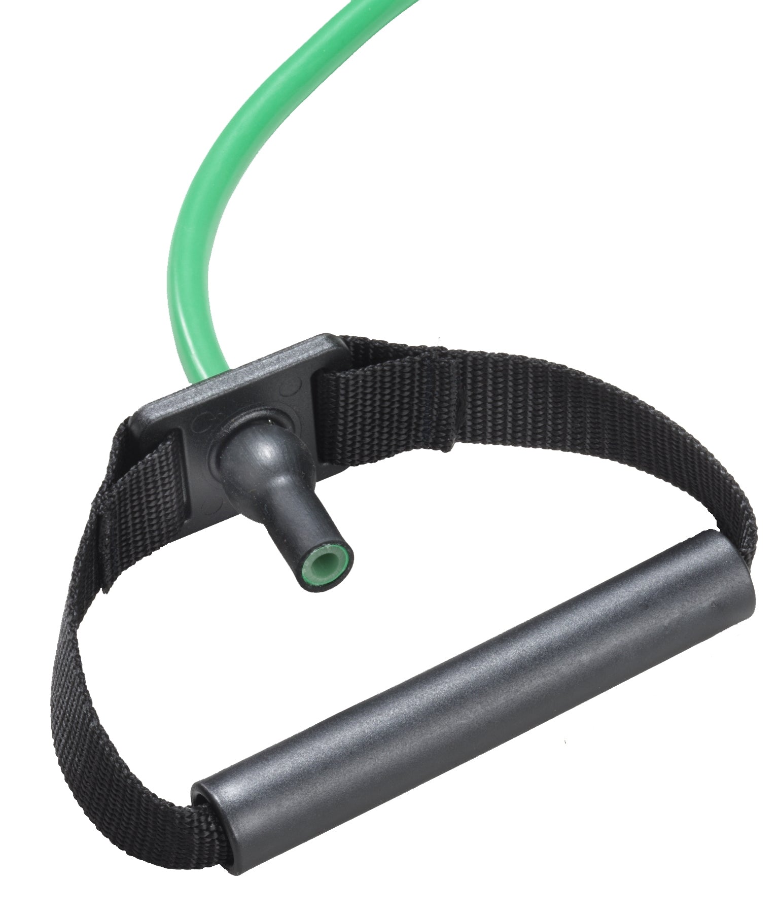 Bandes de résistance en latex de haute qualité avec poignées ergonomiques. Idéales pour la musculation et les cours collectifs. Disponibles en 4 niveaux de résistance.