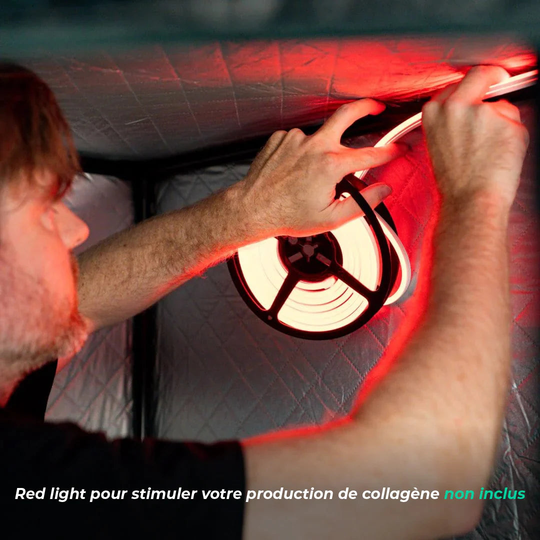 Notre cabine Hammam (chaleur humide) transportable a été conçue pour la récupération et le bien-être. Idéal pour les sportifs et les amateurs de détente, ce hammam portable offre une solution pratique pour soulager les tensions musculaires, améliorer la circulation sanguine et favoriser une relaxation profonde.