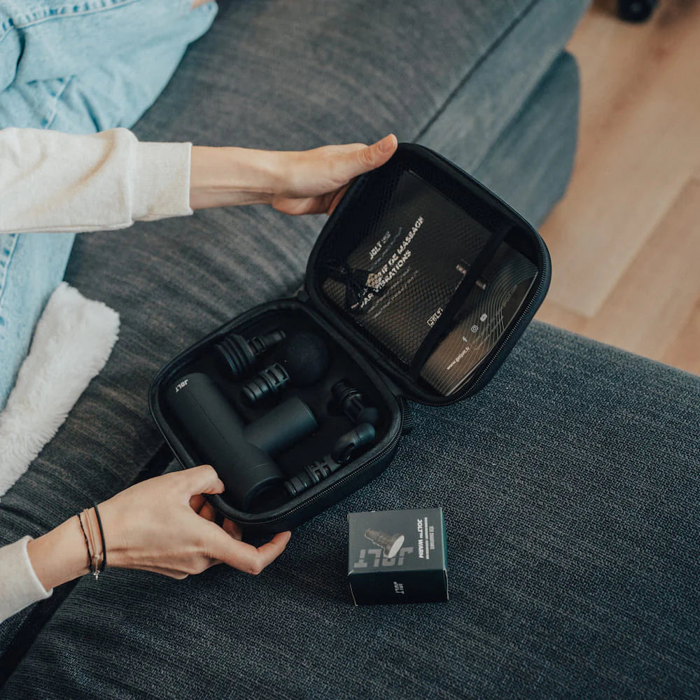 JOLT™ Mini est un pistolet massant dernier-cri qui aide à relaxer vos muscles endoloris ou courbaturés et permet de rétablir votre mobilité. ll aide notamment à récupérer plus rapidement, à réduire les tensions et le stress, ou encore à soigner de nombreuses pathologies. Son format a été pensé pour être facilement transportable et pratique à utiliser.