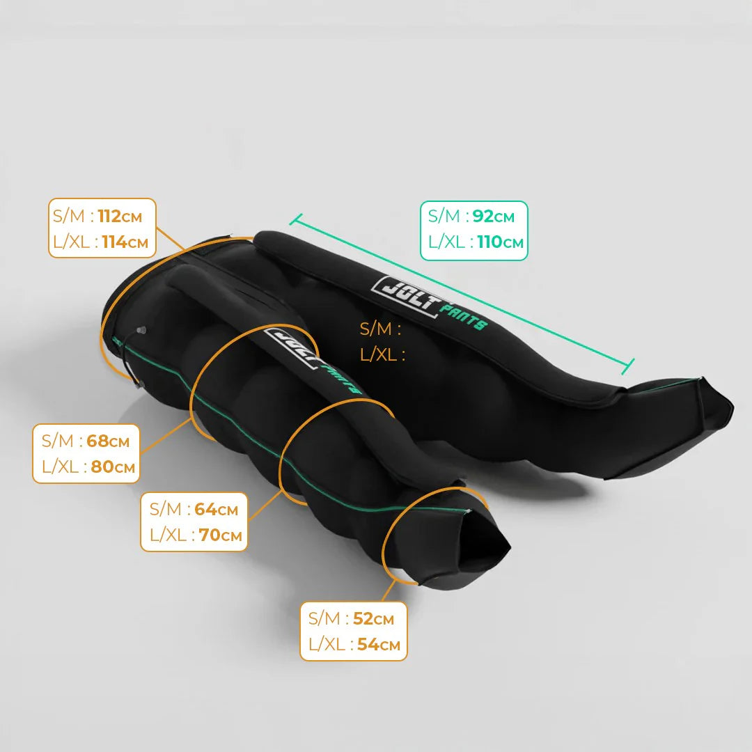 Le pantalon de récupération JOLT™ Pants est un dispositif de pressothérapie dernier cri englobant les jambes et les fessiers, efficace après un entraînement sportif pour récupérer très rapidement, soulager des jambes lourdes, lutter contre la rétention d'eau, favoriser le drainage lymphatique ainsi que contrer la cellulite.