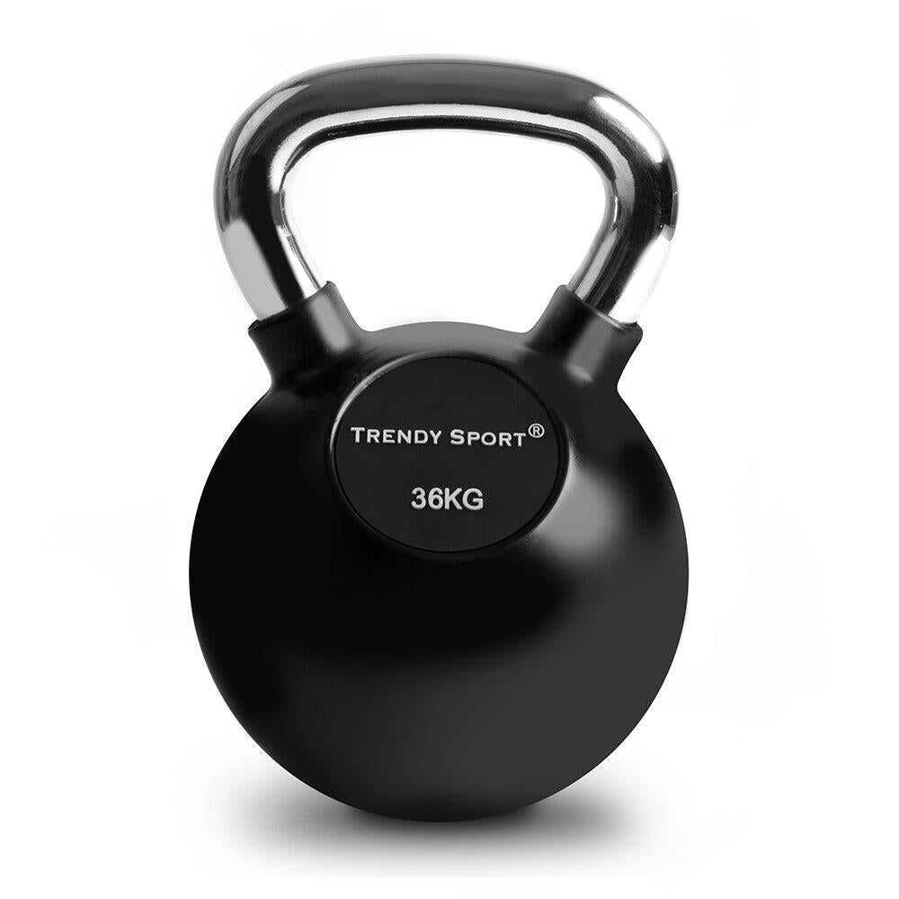 Kettlebell chromé avec revêtement en caoutchouc pour la protection du sol. Disponible en 4-36kg pour une augmentation progressive de l’entraînement. Parfait pour les exercices de force et de coordination.
