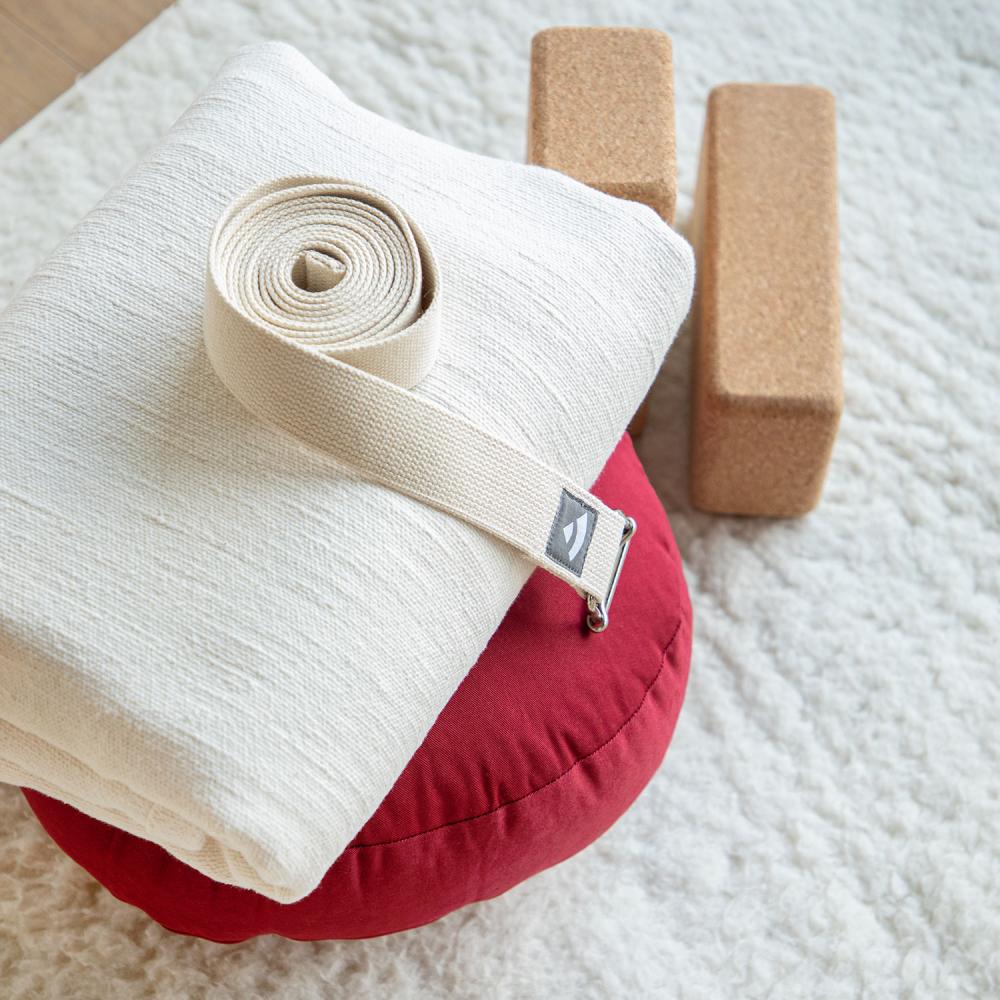 Notre couverture de yoga est 100 % coton. Elle peut être lavée en machine à 30°. Grâce à son entretien facile et à son matériau agréable, la couverture Shavasana est idéale pour une utilisation dans les studios de yoga ou les salles de gym.