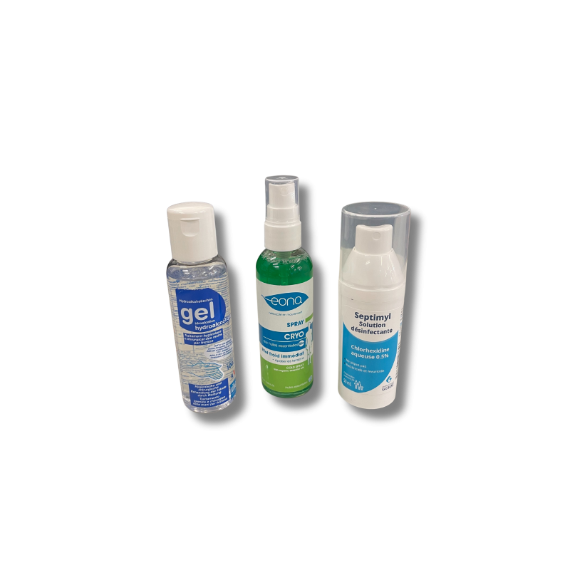 1 gel hydroalcoolique – Pour désinfecter les mains avant toute intervention